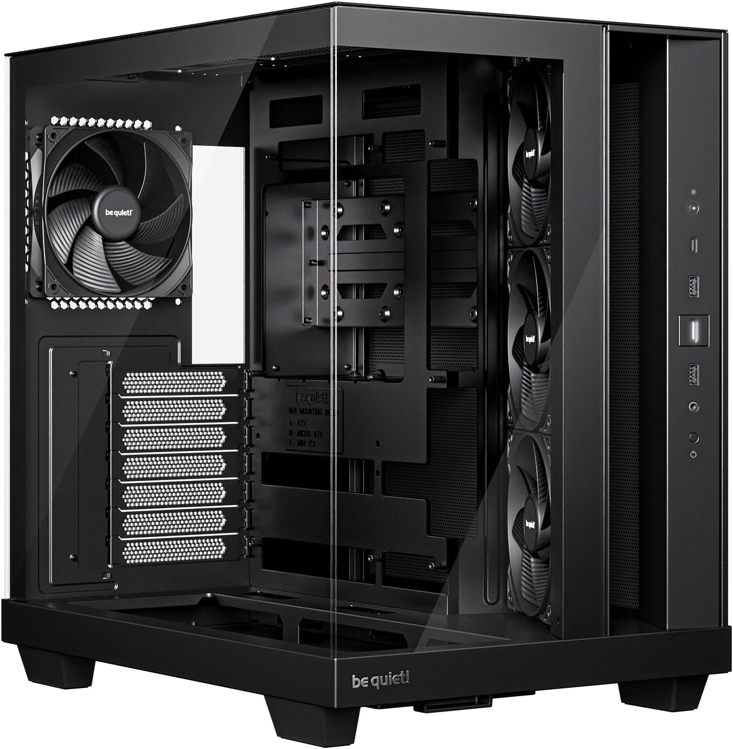 be quiet! Light Base 500 Black PC-Gehäuse, vollständig verglaste Front und Seitenfenster, Show Case, Dual Chamber Design